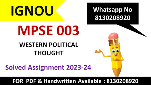 IGNOU MPSE Solved Assignment: MPSE 003 Solved Assignment 2023: Those students who had successfully submitted their Assignments to their allocated study centres can now check their Assignment Status. Alongside assignment status, they will also checkout their assignment marks & result. IGNOU MPSE M.A. (Political Science) Solved Assignment 2023: All this is often available in a web mode. After submitting the assignment, you'll check you IGNOU Assignment Status only after 3-4 weeks. it'd take 40 days to declare.